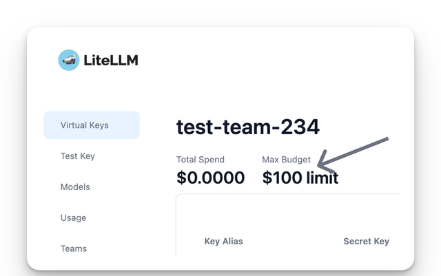 max_budget: 100 # Optional[float], optional): upperbound of $100, for all /key/generate requests